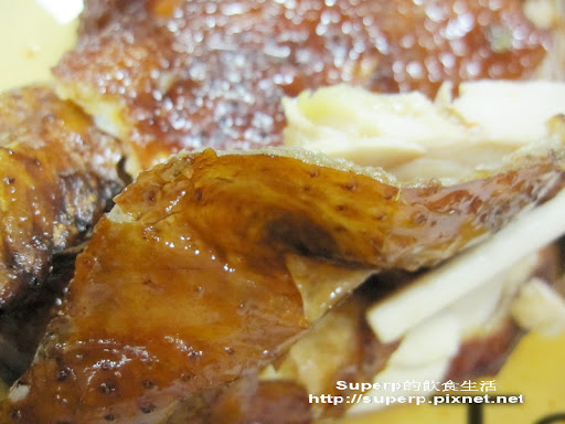 雞皮薄脆,乍看之下很像是北京烤鴨的皮。皮內脂肪並不多,我猜有可能是跟上次竹家莊一樣的三黃雞。琥珀色的外皮已有蔥油醬的味道,美味極了!