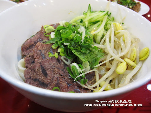 裡面的料有牛腱和豆芽以及黃瓜絲
