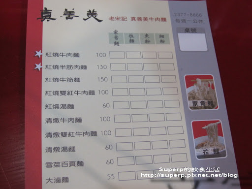 前陣子看到有人介紹真善美,說他們獲選為2008年台北國際牛肉麵節五星級評選的優良店家,突然想起來這間離我家不遠,也該回味一下了。結果一回味就陸續回個好幾次,菜單差不多快全制霸了。