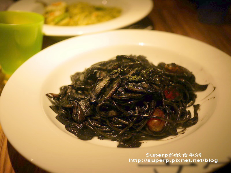 威尼斯墨魚細麵$280(墨魚醬汁濃郁鮮美,店家用的麵條也是墨魚汁一起做的,而非煮好的麵條跟墨魚醬拌一拌而已。墨魚麵條跟墨魚醬汁非常的融合,墨魚本身也彈牙,推!不過吃完嘴巴都黑黑的)