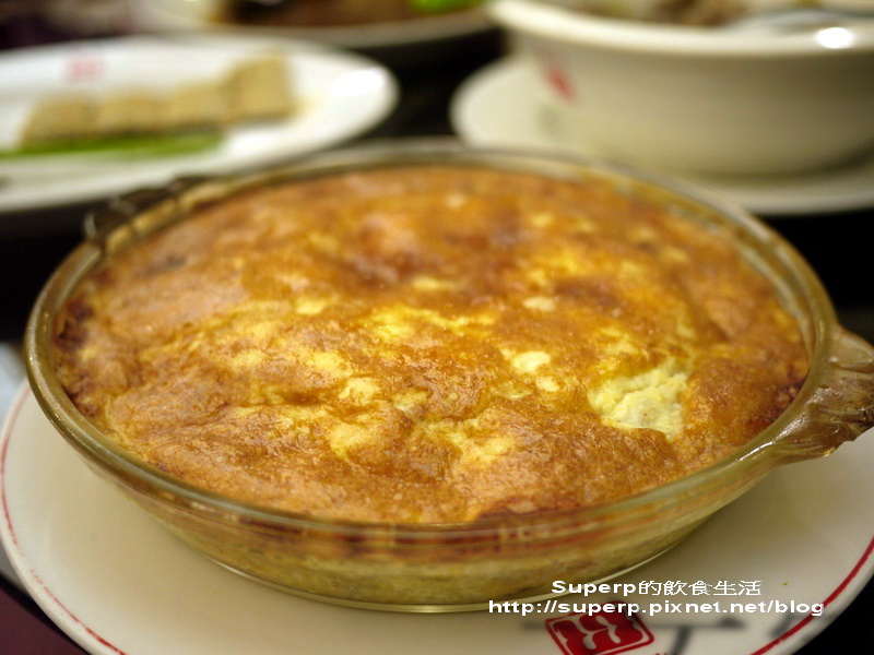 遛黃蛋(有點像把鴨油鴨肉末以及蛋拿去蒸過,但最後有烤一下,因為最上層有焦焦的感覺。還不錯啦,蛋頗夠味的)