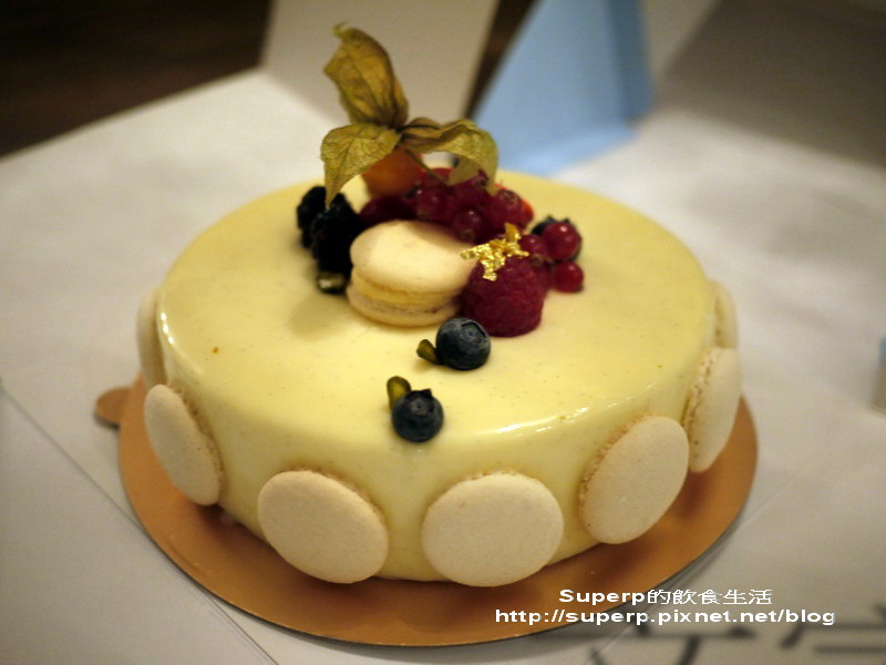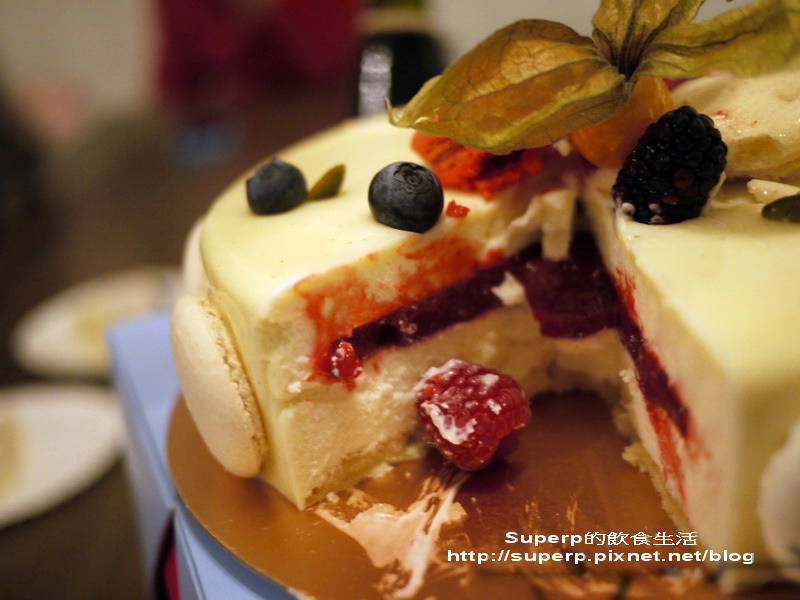 生日蛋糕(記得是Micasa Dolci的,外圈圍繞著macaron,裡面包著蔓越梅餡,好吃,感謝友人們!)