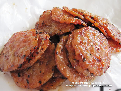基於是蜜汁的,這肉乾的味道是鹹中帶甜,頗優的。硬度的方面,有些很軟,有些比較韌,可能要看是豬的什麼部位吧。